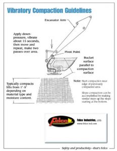 Felco Vibratory Compaction Buckets combine the compaction performance of either aRammerorNPK Construction EquipmentVibratory Plate Compactor with the versatility of an excavator bucket. These vibratory units can apply from 7,800 to 34,000 pounds of impact force depending on size and model. Vibratory compaction forces the air in the soils to the surface which decreases air pockets making them ideal for compacting granular materials.